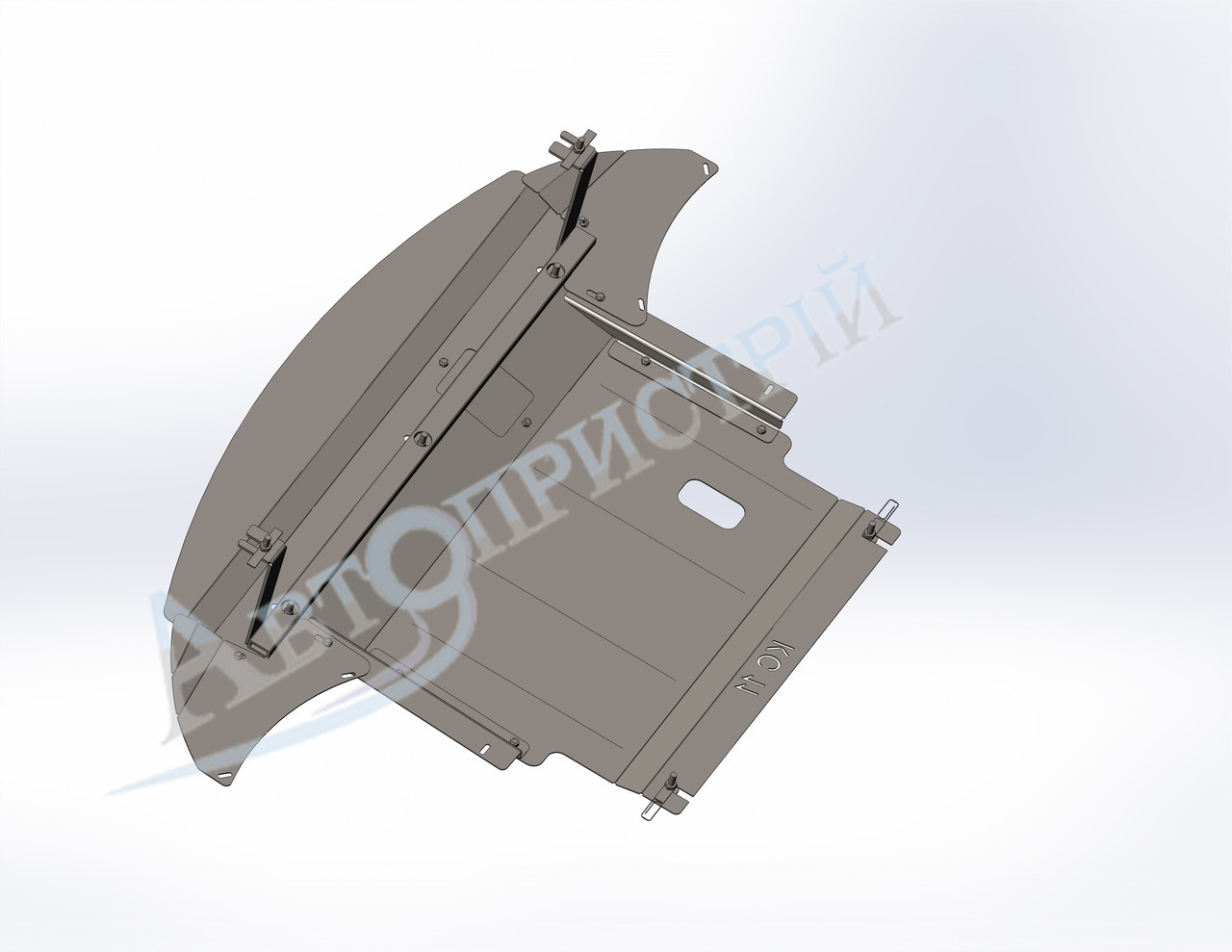 Металева, сталь товщиною 2 мм. Захист двигуна надійно захистить моторний відсік автомобіля від пошкоджень при наїзді на камені, гострі і тверді предмети, від попадання вологи і бруду.